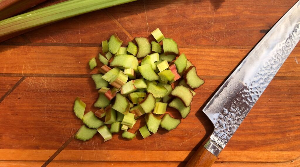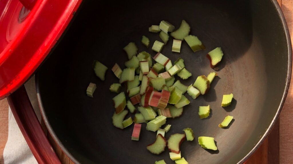 - Snijd rabarber in plakjes en blancheer kort in heet water