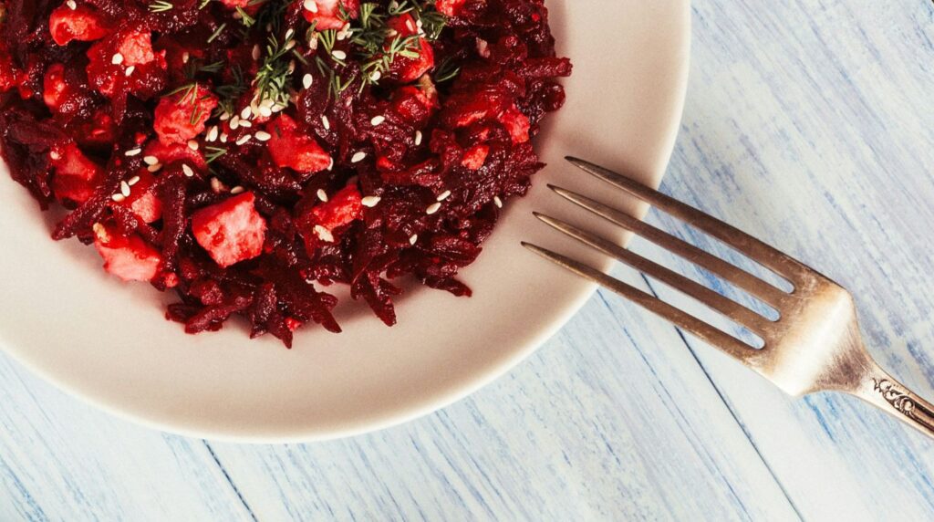 - Meng bieten, rabarber, rucola, geitenkaas en walnoten.